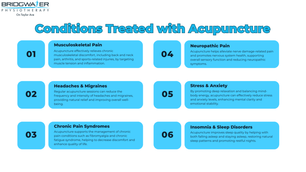 Musculoskeletal Pain: Acupuncture is frequently used to manage musculoskeletal pain conditions such as back pain & neck pain, arthritis, and sports injuries.